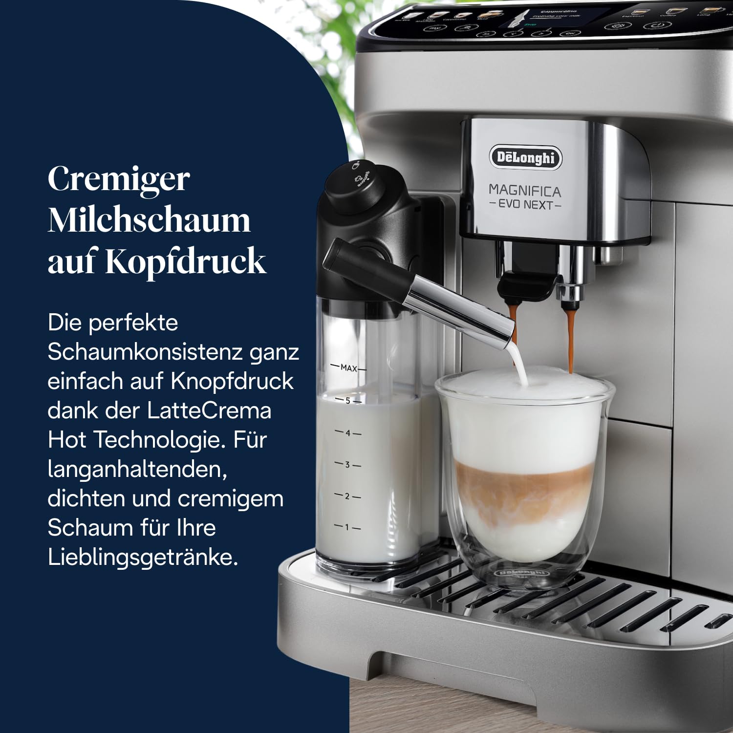 - MAGNIFICA EVO NEXT: Für alle, die Design und Kaffee lieben; 13 Getränke auf Knopfdruck, 3 Profile für individuelle Vorlieben und Barista-Qualität auf Knopfdruck
