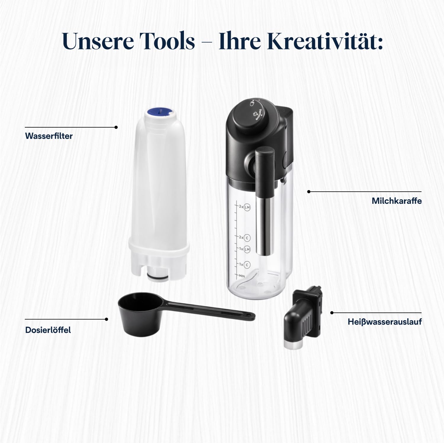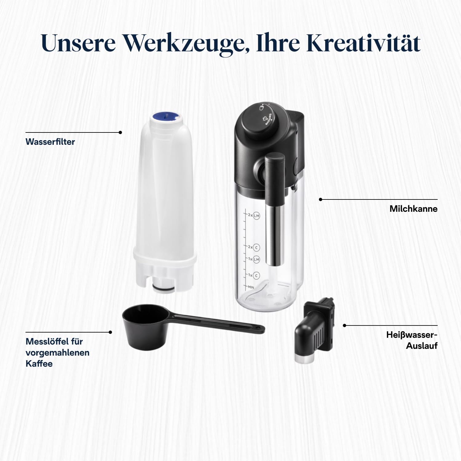 Mahlwerk: Das integrierte Mahlwerk lässt sich individuell in 13 Stufen einstellen. Darüber hinaus können Sie je nach Vorliebe zwischen Aroma (mild, mittel, stark) und der Temperatur Ihrer Getränke wählen.
