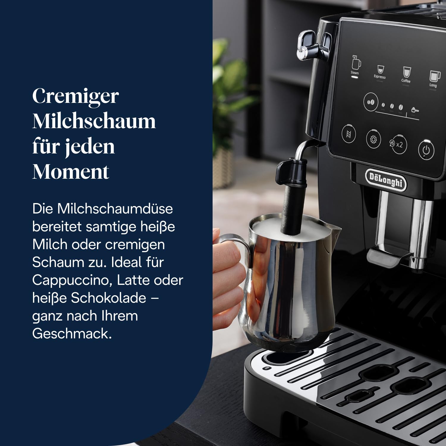 Soft-Touch-Bedienfeld: Intuitive, funktionale Bedienung dank der 4 Direktwahltasten für Ihre Lieblingsgetränke.
