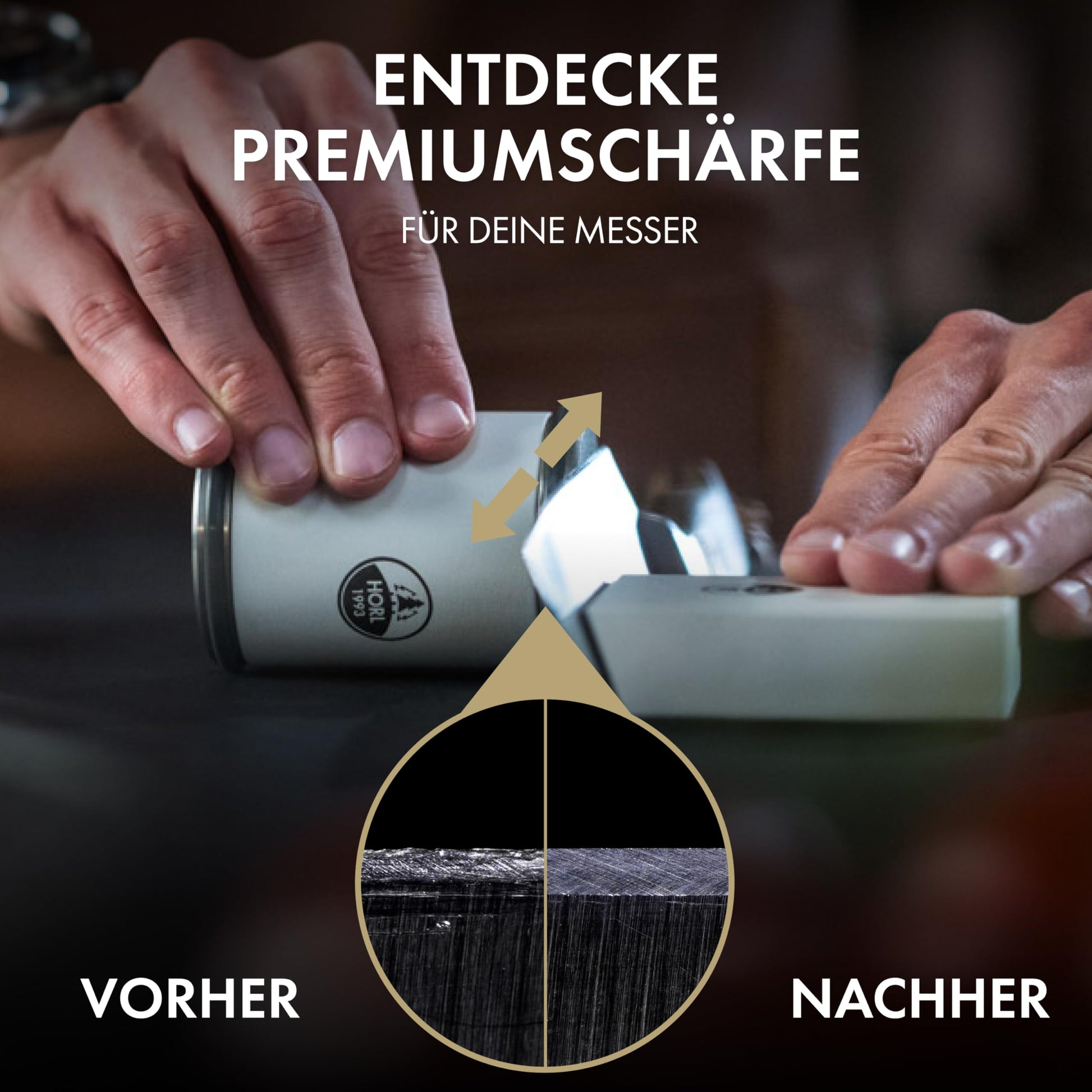 - Der Rollenschleifer HORL2 bietet volle Flexibilität beim Schärfen von Messern mit austauschbaren Schleifscheiben und einer magnetischen Schleiflehre mit einem Winkel von 15° für feine Schärfe und 20° für stabile Schärfe.