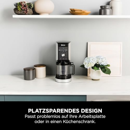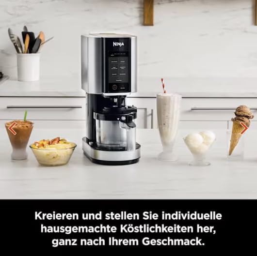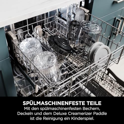 Lieferumfang: Ninja Creami Eismaschine & Gefrier-Dessertmaschine (EU-Stecker), 3 Behälter & Deckel, Creamerizer-Rührer, Motorbasis, Rezeptheft. Spülmaschinenfeste abnehmbare Teile. Farbe: Schwarz/Silber