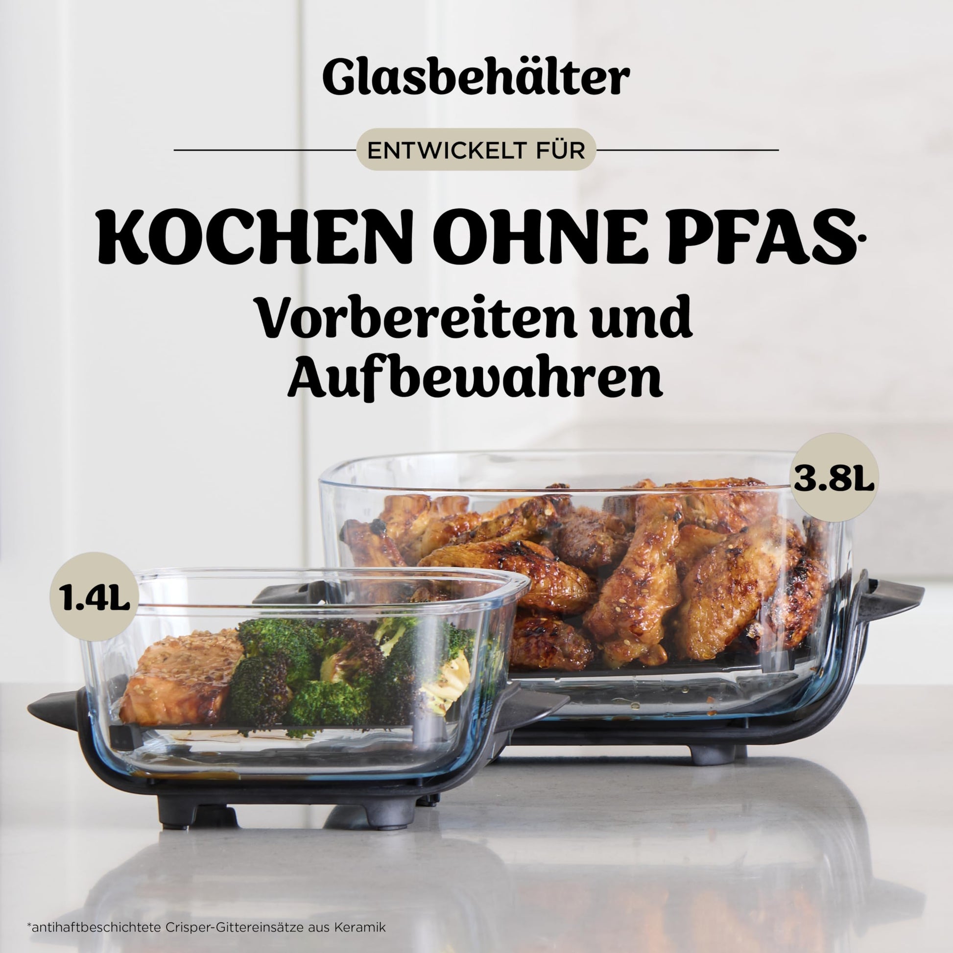 - Zuverlässiges Kochen ohne PFAS*: mit CleanCrisp-Glasbehältern zum Kochen und Aufbewahren