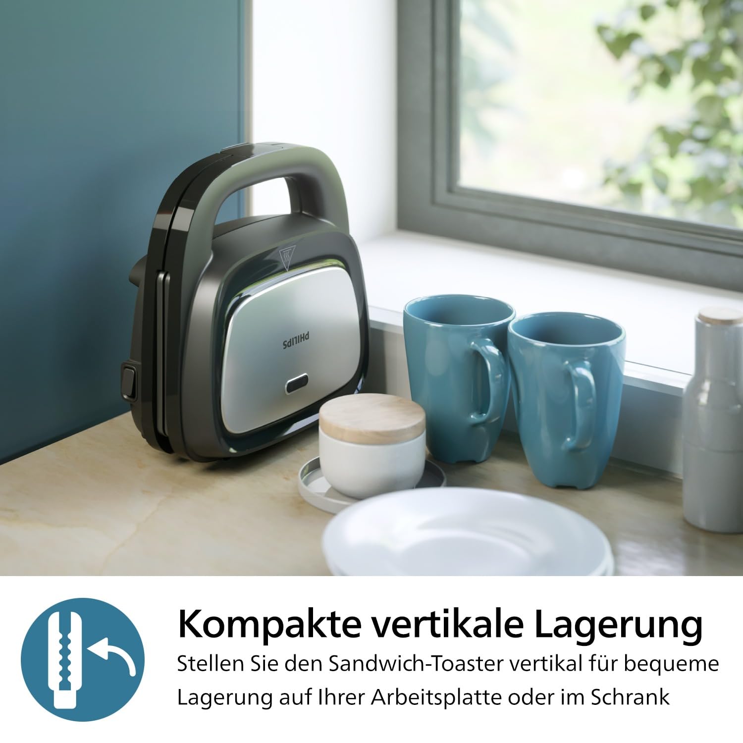 - User-friendly design – The sandwich maker has an easy to use integrated cable storage system that ensures a tidy work surface. Compact vertical storage design saves space in your kitchen