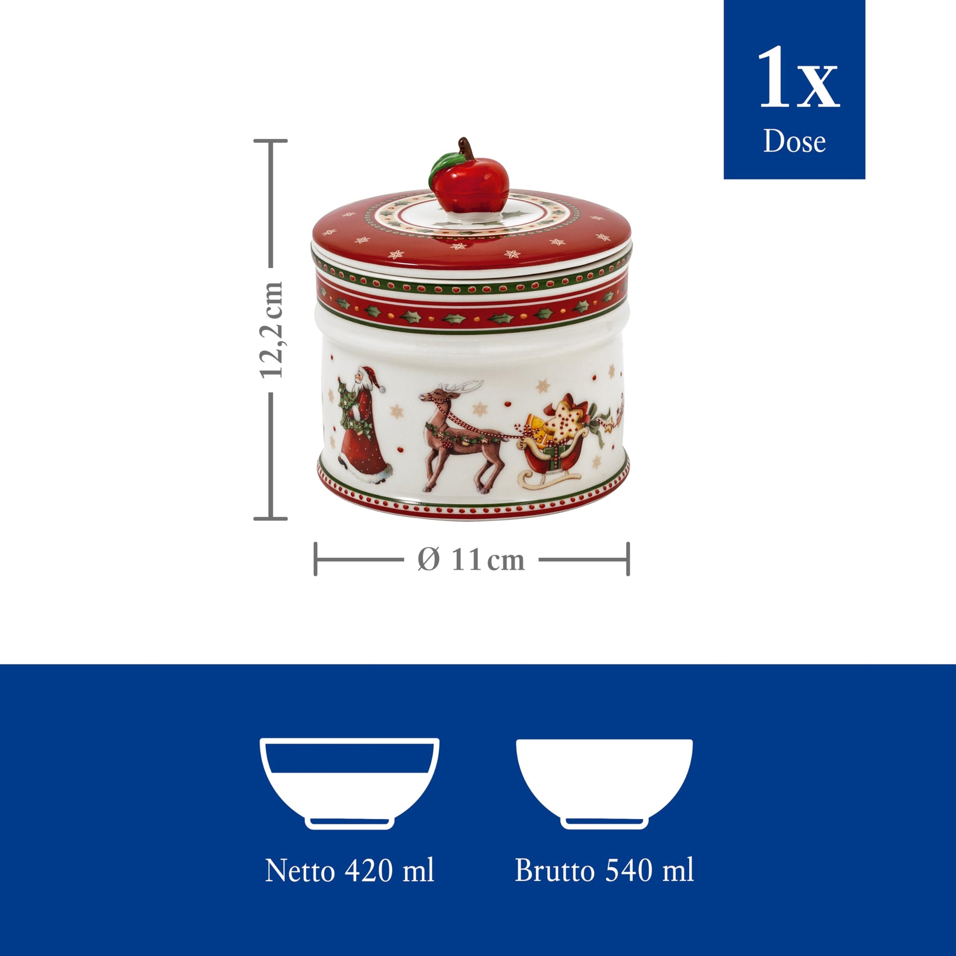 - Box contents: 1 x Villeroy & Boch Winter Bakery Delight large storage jar for pastries, size: 17.5 cm x 14.8 cm x 17.5 cm, material: premium porcelain, colour: white/red (item number: 1486124526)