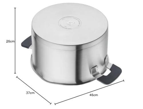 - Box contents: 1x ZWILLING Simplify cooking pot set, 5 pieces, contents: 3x saucepans with lids (diameter 16 cm / 2 litres, diameter 20 cm / 3.5 litres, diameter 24 cm / 6 litres), 1x stewing pan + lid (diameter 20 cm / 3 L), 1x saucepan (diameter 16 cm / 1.5 L), material: 18 stainless steel. /10, Color: Silver-black, 1009150
