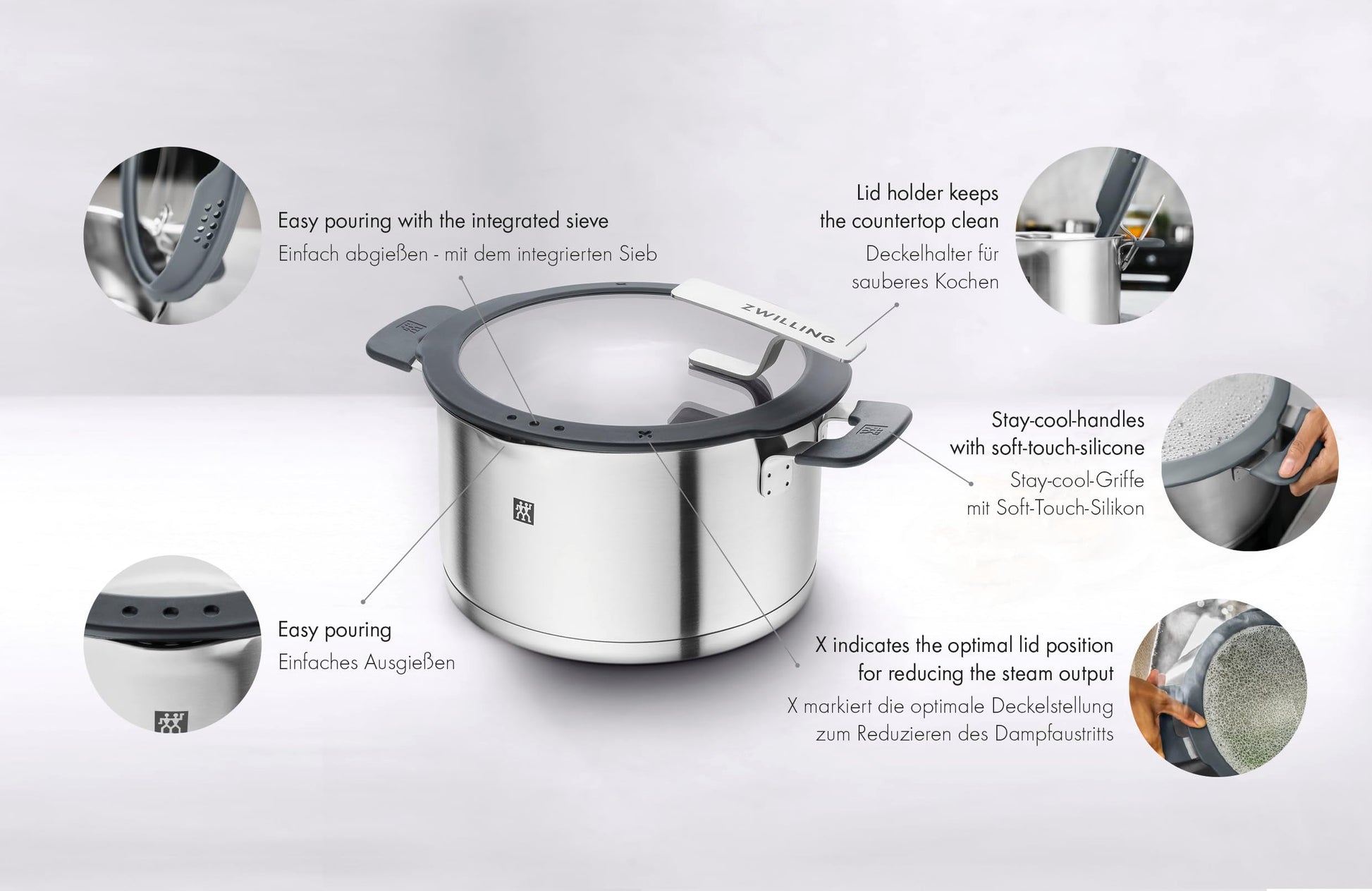 Feature-Highlight (Best for Practical Buyers) ZWILLING Simplify 5-Piece Pot Set with Integrated Strainer Lids